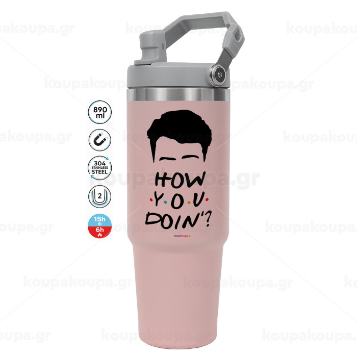 Friends how you doin?, ΡΟΖ χρώματος Θερμός Ανοξείδωτο 890ml (30oz) με χερούλι