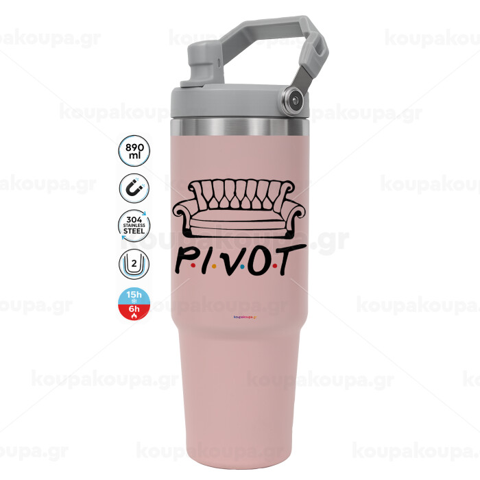 Friends Pivot, ΡΟΖ χρώματος Θερμός Ανοξείδωτο 890ml (30oz) με χερούλι
