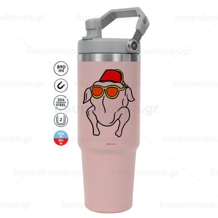 Friends turkey, ΡΟΖ χρώματος Θερμός Ανοξείδωτο 890ml (30oz) με χερούλι