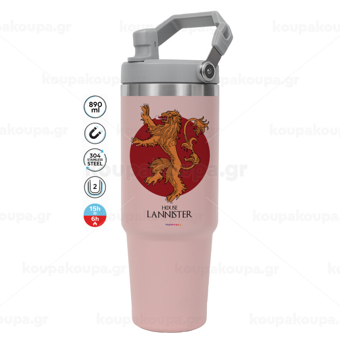 House Lannister GOT, ΡΟΖ χρώματος Θερμός Ανοξείδωτο 890ml (30oz) με χερούλι