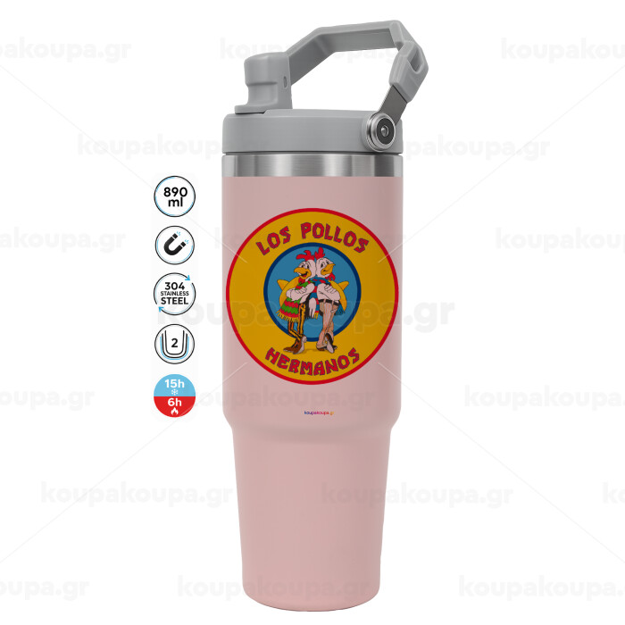 Los Pollos Hermanos, ΡΟΖ χρώματος Θερμός Ανοξείδωτο 890ml (30oz) με χερούλι