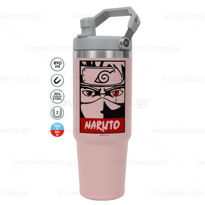 Naruto anime, ΡΟΖ χρώματος Θερμός Ανοξείδωτο 890ml (30oz) με χερούλι