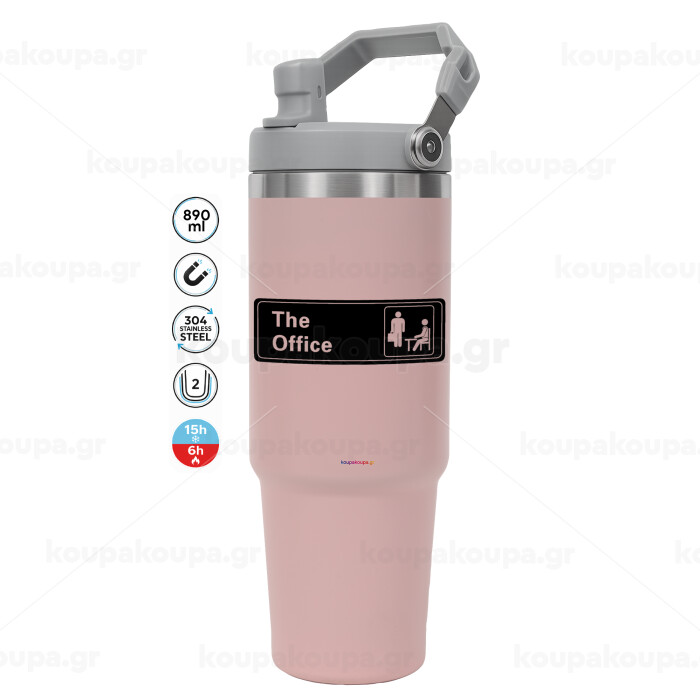 The office, ΡΟΖ χρώματος Θερμός Ανοξείδωτο 890ml (30oz) με χερούλι