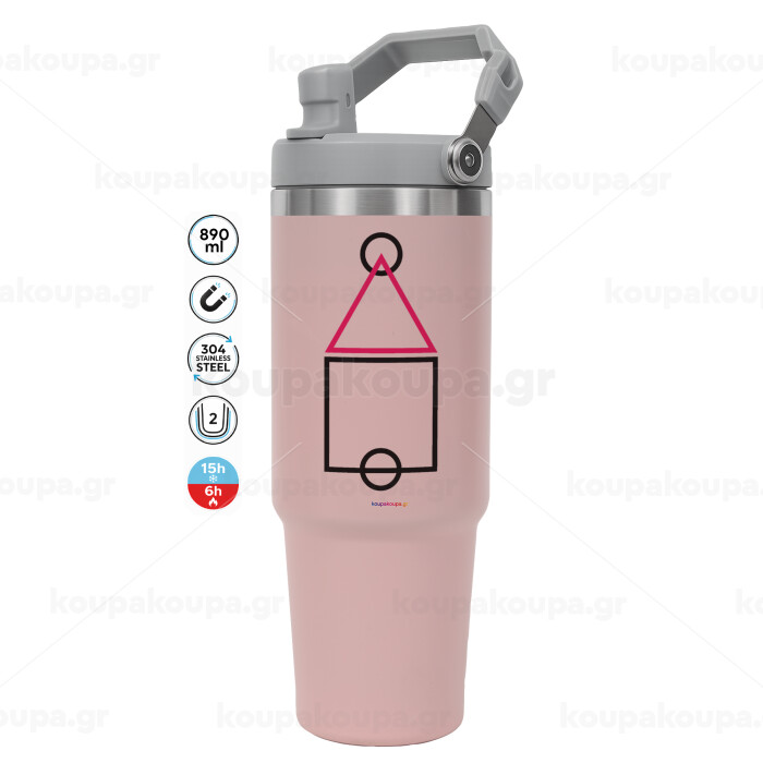 The squid game ojingeo, ΡΟΖ χρώματος Θερμός Ανοξείδωτο 890ml (30oz) με χερούλι