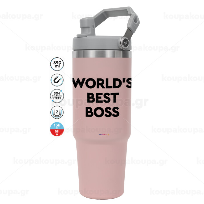 World's best boss, ΡΟΖ χρώματος Θερμός Ανοξείδωτο 890ml (30oz) με χερούλι