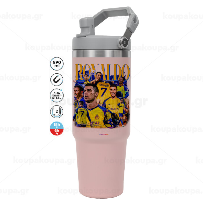 Cristiano Ronaldo Al Nassr, ΡΟΖ χρώματος Θερμός Ανοξείδωτο 890ml (30oz) με χερούλι