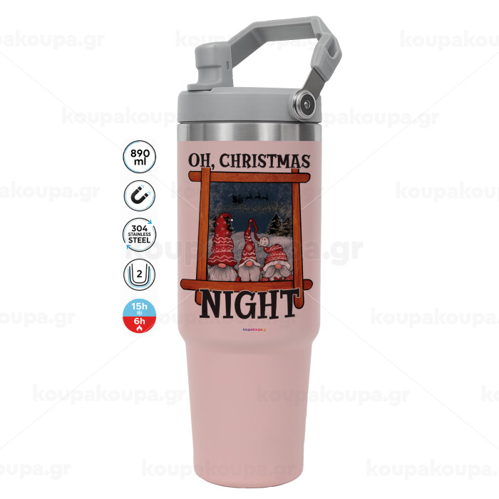 Oh Christmas Night, ΡΟΖ χρώματος Θερμός Ανοξείδωτο 890ml (30oz) με χερούλι