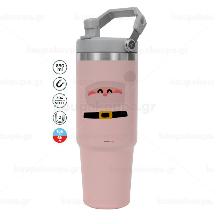 Simple Santa, ΡΟΖ χρώματος Θερμός Ανοξείδωτο 890ml (30oz) με χερούλι