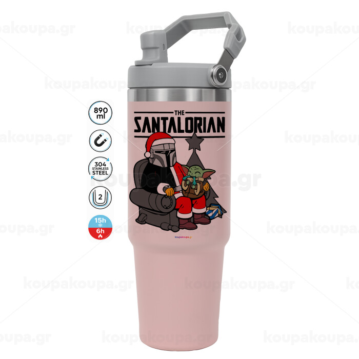 Star Wars Santalorian, ΡΟΖ χρώματος Θερμός Ανοξείδωτο 890ml (30oz) με χερούλι