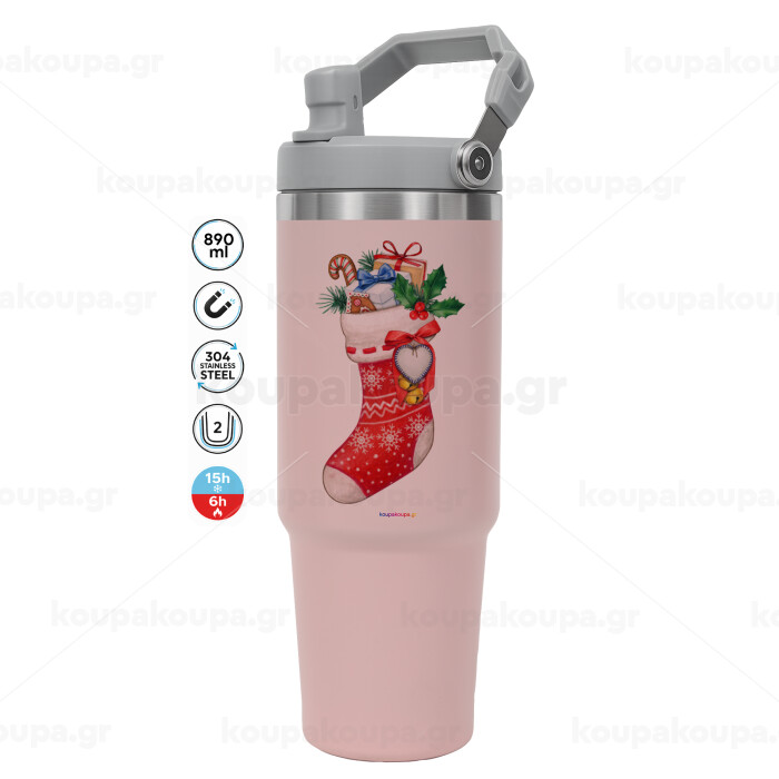 Xmas boot, ΡΟΖ χρώματος Θερμός Ανοξείδωτο 890ml (30oz) με χερούλι