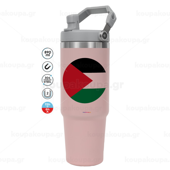Σημαία Παλαιστίνης, ΡΟΖ Travel Tumbler Θερμός με χερούλι και καλαμάκι 890ml