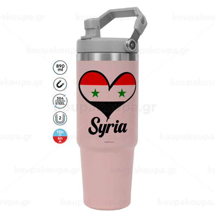 Syria flag, ΡΟΖ Travel Tumbler Θερμός με χερούλι και καλαμάκι 890ml