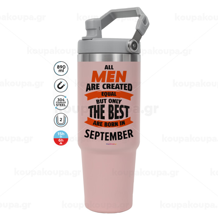 All men are created equal but only the best are born in September, ΡΟΖ χρώματος Θερμός Ανοξείδωτο 890ml (30oz) με χερούλι