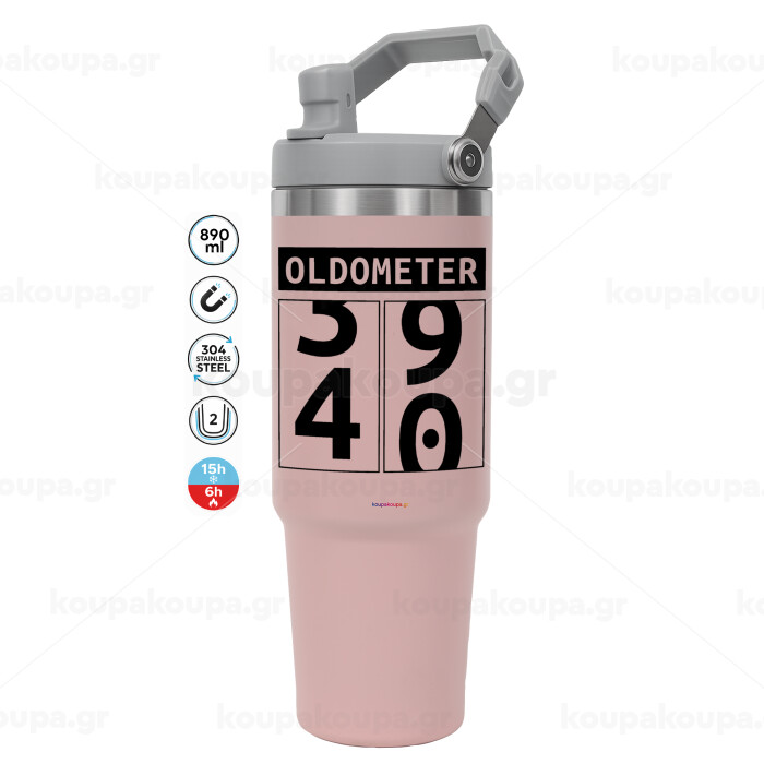 OLDOMETER, ΡΟΖ χρώματος Θερμός Ανοξείδωτο 890ml (30oz) με χερούλι
