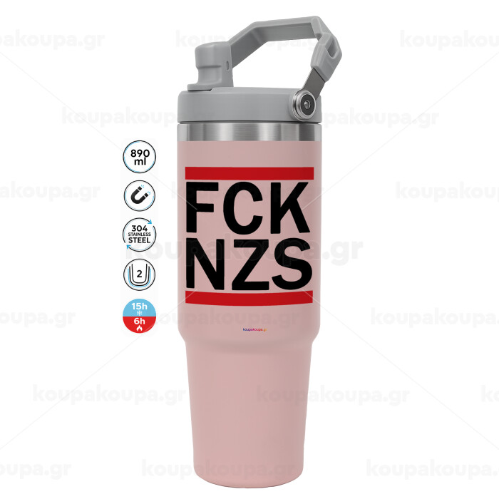 FCK NZS, ΡΟΖ χρώματος Θερμός Ανοξείδωτο 890ml (30oz) με χερούλι