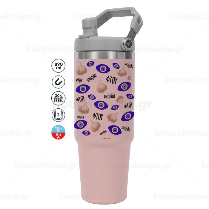 Φτου, φτου, σκόρδα!!!, ΡΟΖ χρώματος Θερμός Ανοξείδωτο 890ml (30oz) με χερούλι
