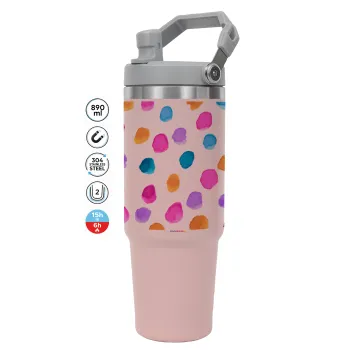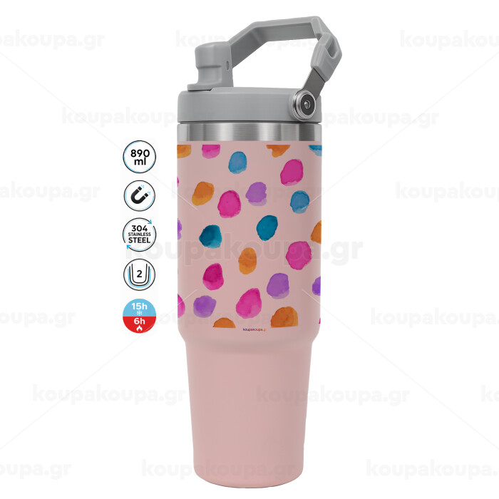 Watercolor dots, ΡΟΖ χρώματος Θερμός Ανοξείδωτο 890ml (30oz) με χερούλι