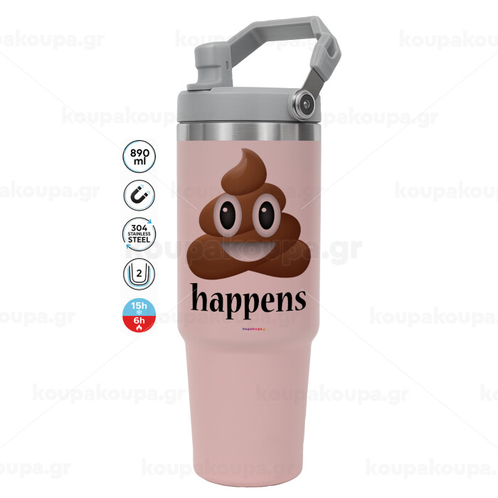 Shit Happens, ΡΟΖ χρώματος Θερμός Ανοξείδωτο 890ml (30oz) με χερούλι