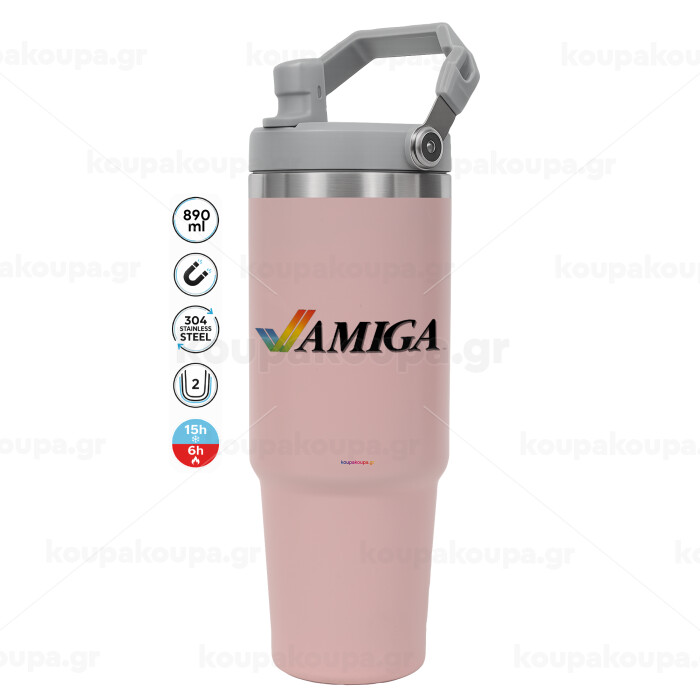 amiga, ΡΟΖ χρώματος Θερμός Ανοξείδωτο 890ml (30oz) με χερούλι