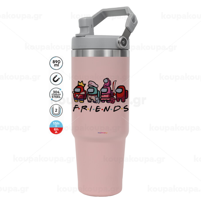 Among US Friends, ΡΟΖ χρώματος Θερμός Ανοξείδωτο 890ml (30oz) με χερούλι