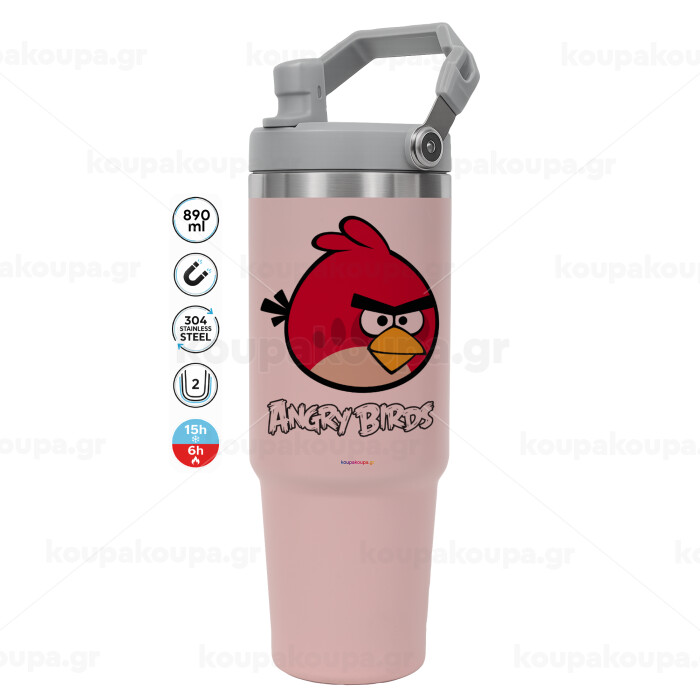 Angry birds Terence, ΡΟΖ χρώματος Θερμός Ανοξείδωτο 890ml (30oz) με χερούλι