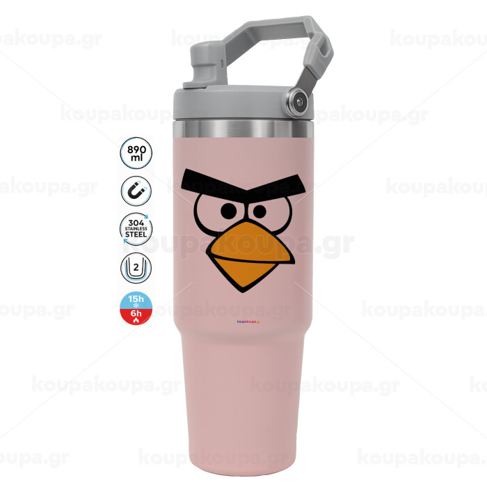 Angry birds eyes, ΡΟΖ χρώματος Θερμός Ανοξείδωτο 890ml (30oz) με χερούλι