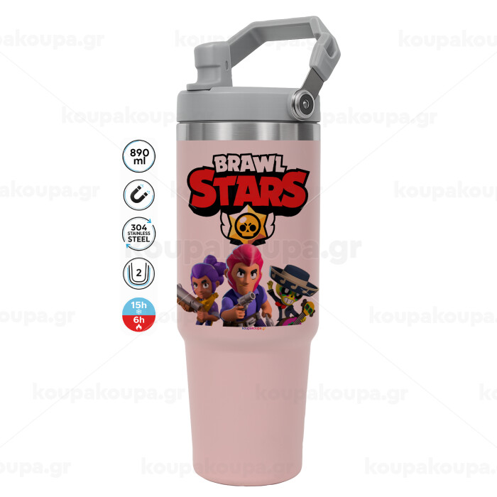 Brawl Stars Blue, ΡΟΖ χρώματος Θερμός Ανοξείδωτο 890ml (30oz) με χερούλι