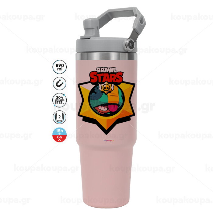 Brawl Stars Leon, ΡΟΖ χρώματος Θερμός Ανοξείδωτο 890ml (30oz) με χερούλι