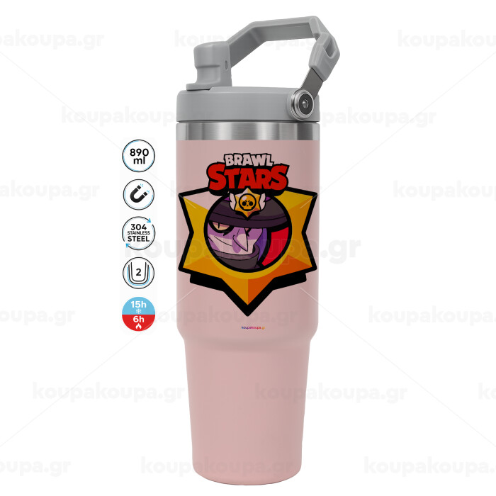 Brawl Stars Mortis, ΡΟΖ χρώματος Θερμός Ανοξείδωτο 890ml (30oz) με χερούλι