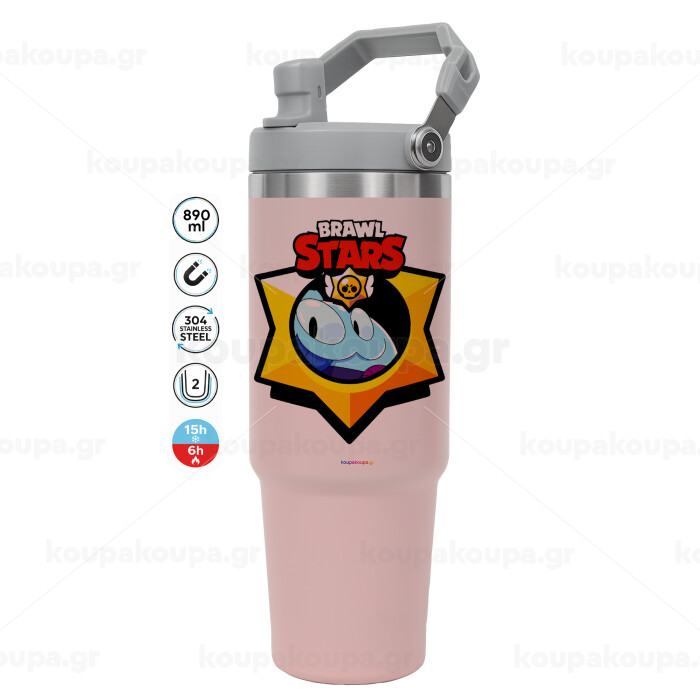 Brawl Stars Squeak, ΡΟΖ χρώματος Θερμός Ανοξείδωτο 890ml (30oz) με χερούλι