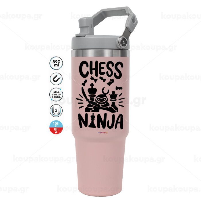 Chess ninja, ΡΟΖ χρώματος Θερμός Ανοξείδωτο 890ml (30oz) με χερούλι