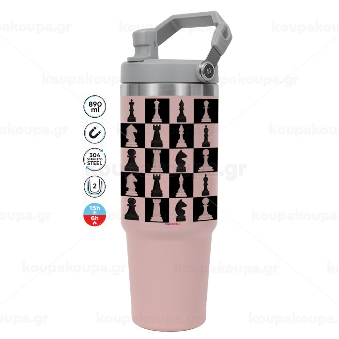 Chess set, ΡΟΖ χρώματος Θερμός Ανοξείδωτο 890ml (30oz) με χερούλι
