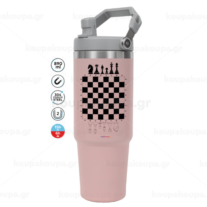 Σκάκι, ΡΟΖ χρώματος Θερμός Ανοξείδωτο 890ml (30oz) με χερούλι