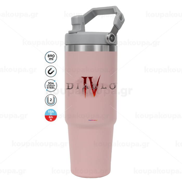 Diablo iv, ΡΟΖ χρώματος Θερμός Ανοξείδωτο 890ml (30oz) με χερούλι