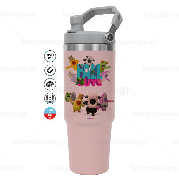 FALL GUYS, ΡΟΖ χρώματος Θερμός Ανοξείδωτο 890ml (30oz) με χερούλι