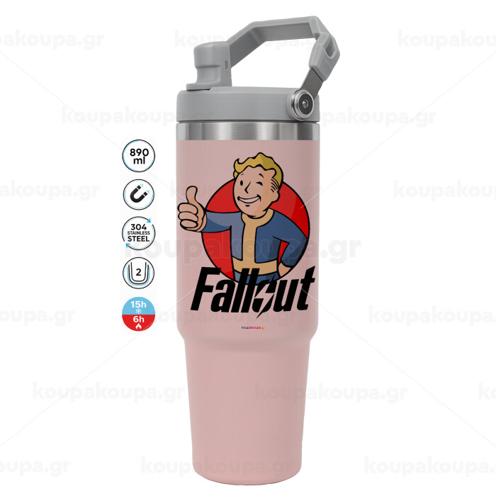 Fallout Vault Boy, ΡΟΖ χρώματος Θερμός Ανοξείδωτο 890ml (30oz) με χερούλι