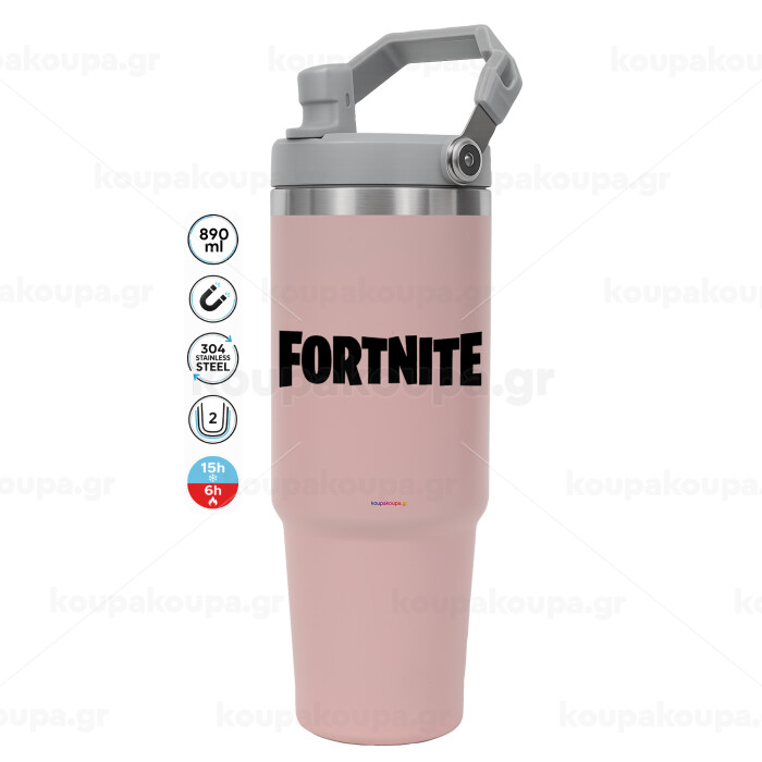 Fortnite landscape, ΡΟΖ χρώματος Θερμός Ανοξείδωτο 890ml (30oz) με χερούλι