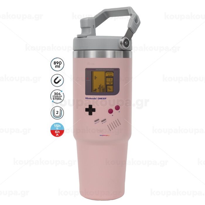 Gameboy, ΡΟΖ χρώματος Θερμός Ανοξείδωτο 890ml (30oz) με χερούλι