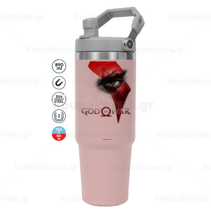 God of war Stratos, ΡΟΖ χρώματος Θερμός Ανοξείδωτο 890ml (30oz) με χερούλι