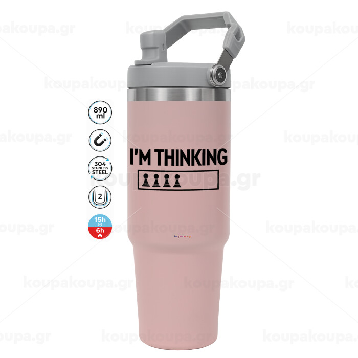 I'm thinking, ΡΟΖ χρώματος Θερμός Ανοξείδωτο 890ml (30oz) με χερούλι