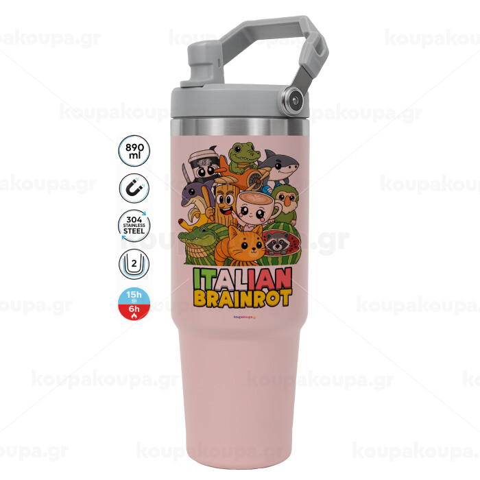 Italian Brainrot friends, ΡΟΖ χρώματος Θερμός Ανοξείδωτο 890ml (30oz) με χερούλι
