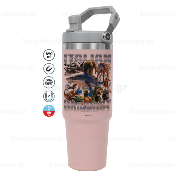 Italian Brainrot, ΡΟΖ χρώματος Θερμός Ανοξείδωτο 890ml (30oz) με χερούλι