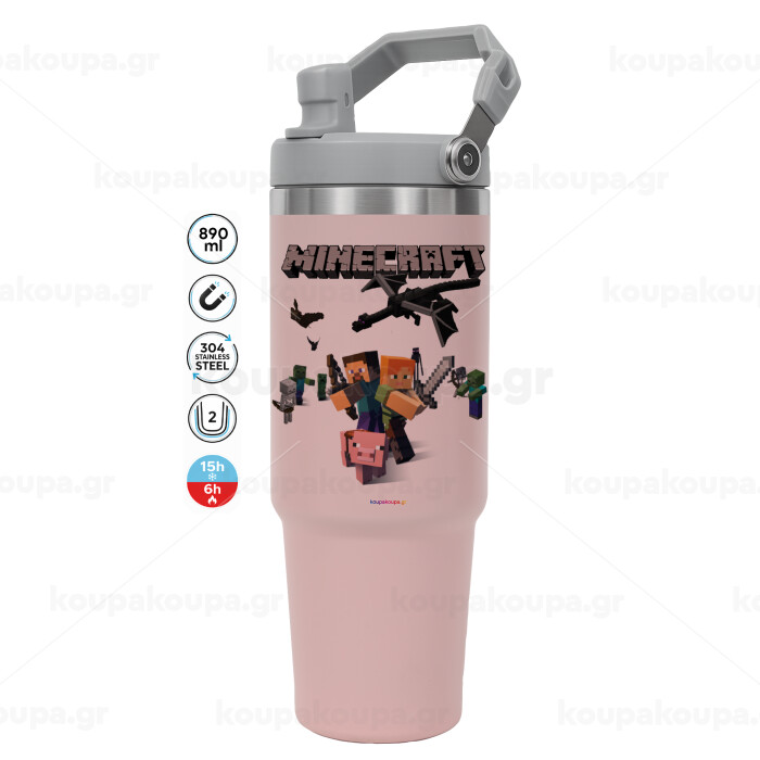 Minecraft Alex, ΡΟΖ χρώματος Θερμός Ανοξείδωτο 890ml (30oz) με χερούλι