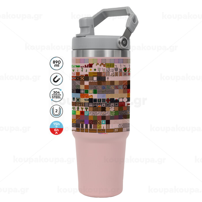 Minecraft blocks, ΡΟΖ χρώματος Θερμός Ανοξείδωτο 890ml (30oz) με χερούλι