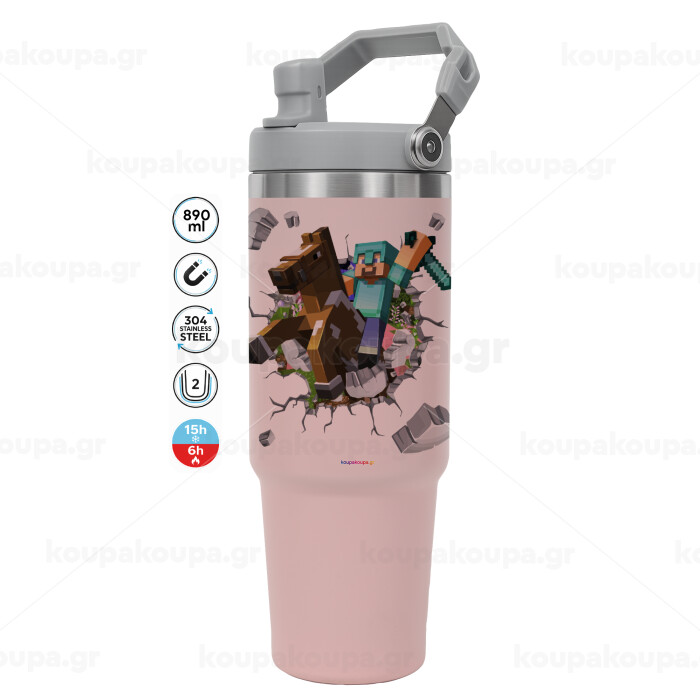Minecraft brick, ΡΟΖ χρώματος Θερμός Ανοξείδωτο 890ml (30oz) με χερούλι