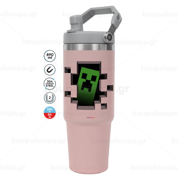 Minecraft creeper, ΡΟΖ χρώματος Θερμός Ανοξείδωτο 890ml (30oz) με χερούλι
