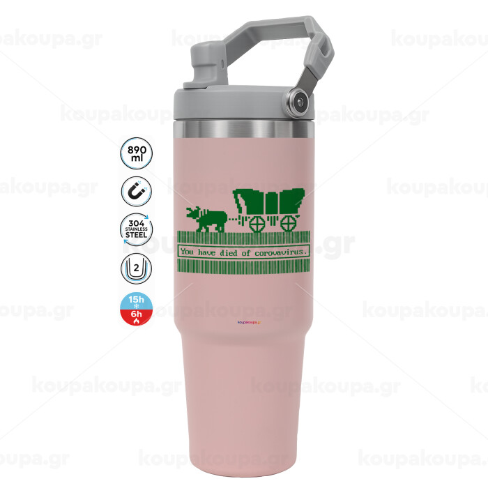 Oregon Trail, cov... edition, ΡΟΖ χρώματος Θερμός Ανοξείδωτο 890ml (30oz) με χερούλι