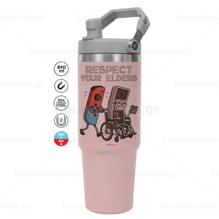 Respect your Elders, ΡΟΖ χρώματος Θερμός Ανοξείδωτο 890ml (30oz) με χερούλι