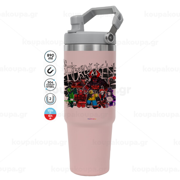 Roblox Forsaken, ΡΟΖ χρώματος Θερμός Ανοξείδωτο 890ml (30oz) με χερούλι