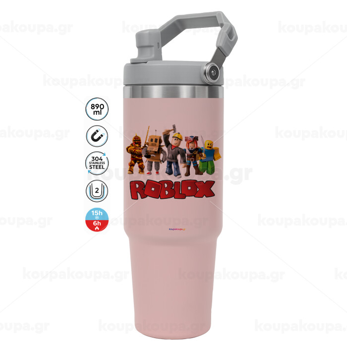 Roblox squad, ΡΟΖ χρώματος Θερμός Ανοξείδωτο 890ml (30oz) με χερούλι